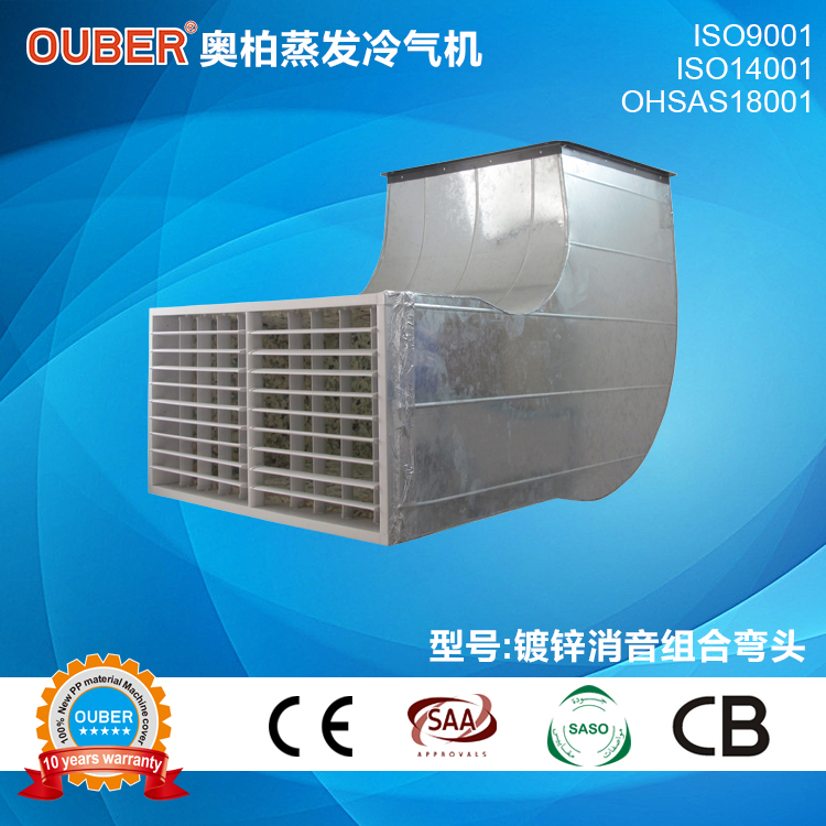 镀锌消音弯头:整体降温工程应使用轴流机型,对需要安静的场所,应配套消音弯头风管使用。如制衣厂、商场、网吧、游戏机房、养殖场等。